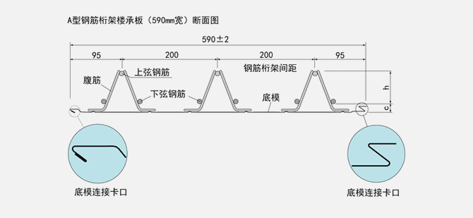 鋼筋桁架樓承板由上弦鋼筋、下弦鋼筋、腹桿鋼筋、底模、支座鋼筋構(gòu)成。